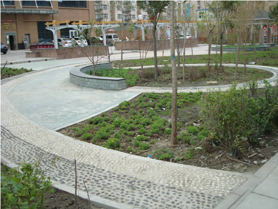 蘇杭明珠花園小區內總高近百米、地上建筑31層的華春鑫座,是河南東路地標性建筑,打造華春鑫座周圍的園林綠化更是這項綠化工作的重點之一,僅華春鑫座周圍的園林綠化,公司就投資100余萬元。華春鑫座周圍地面全部為花崗巖石材鋪貼,修建了廊架、亭臺、大小花壇共計9個,花壇內種植了各色花卉,鵝卵石及青石板鋪貼的休閑園路,人性化的休息座椅隨處可見,給主業創造了一個愜意的休閑小憩的綠色環境。