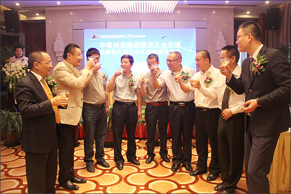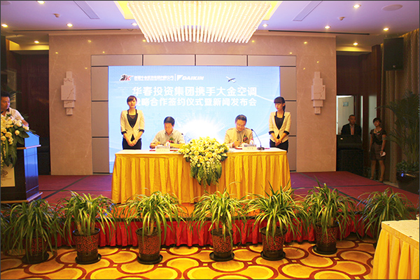 2013年6月27日,新疆華春投資集團(tuán)與世界著名空調(diào)品牌——大金空調(diào)在新疆烏魯木齊正式簽約,達(dá)成戰(zhàn)略合作意向,雙方將通過(guò)新疆地標(biāo)性地產(chǎn)項(xiàng)目——御宮華府的合作,共同為烏魯木齊市民打造舒適、健康、節(jié)能的高品質(zhì)居住空間。華春投資集團(tuán)黨委書(shū)記嚴(yán)天利與大金(中國(guó))投資有限公司武漢分公司總監(jiān)胡立峰先生等雙方高層領(lǐng)導(dǎo),與各界嘉賓和當(dāng)?shù)刂髁髅襟w共同出席了簽約儀式。