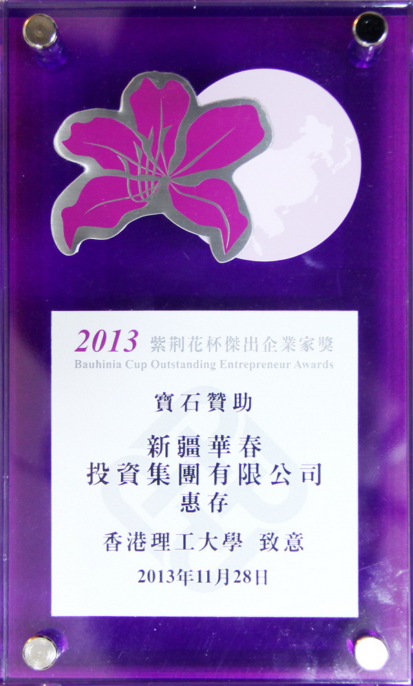 于前不久由紫荊花杯杰出企業(yè)家協(xié)會(huì)舉辦的“紫荊花杯杰出企業(yè)家” 盛大頒獎(jiǎng)典禮儀式上,新疆華春投資集團(tuán)總裁、紫荊花杯杰出企業(yè)家協(xié)會(huì)副理事長李成功先生和華春董事王春容女士,為樹立表彰對(duì)中國工商業(yè)及科技發(fā)展和社會(huì)進(jìn)步作出積極貢獻(xiàn)的優(yōu)秀民營企業(yè)家先進(jìn)典型、促進(jìn)中國非公有制經(jīng)濟(jì)健康發(fā)展,鼎力贊助,榮獲“寶石贊助”獎(jiǎng)。