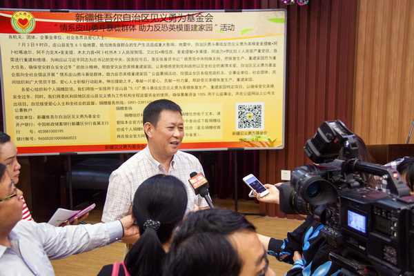 8月11日上午,自治區(qū)見義勇為基金會“情系皮山勇斗暴徒群體 助力反恐英模重建家園”獻(xiàn)愛心動員會在自治區(qū)人民檢察院隆重舉行。自治區(qū)黨委政法委副書記、見義勇為基金會常務(wù)副理事長劉克勤與自治區(qū)紀(jì)檢監(jiān)察廳、司法廳、審計廳、公安廳等黨政領(lǐng)導(dǎo)以及新聞媒體參會。