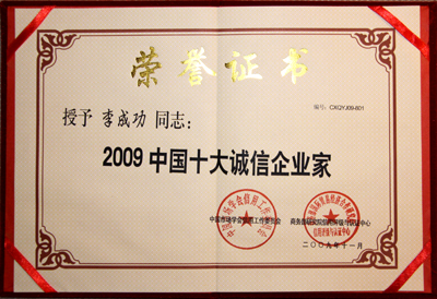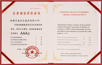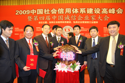 “企業(yè)信用評價(jià)AAA①級誠信企業(yè)”和“2009中國十大誠信企業(yè)家”獎(jiǎng)項(xiàng),是商務(wù)部研究院信用評級與認(rèn)證中心依據(jù)國家有關(guān)法律法規(guī),按照一定程序,集企業(yè)的債權(quán)債務(wù)管理、合同履行、公共記錄以及財(cái)務(wù)等信息,通過企業(yè)誠信評價(jià)模型進(jìn)行科學(xué)評估出來的,旨在區(qū)分良莠、獎(jiǎng)優(yōu)罰劣,為我國企業(yè)參與國內(nèi)外市場競爭創(chuàng)造必要的信用條件。信用等級由低向高依次為A級、AA級、AAA級、AAA①級。對信用等級達(dá)到A級以上的企業(yè),商務(wù)部都要在國家級權(quán)威媒體上進(jìn)行公示。