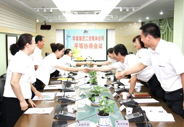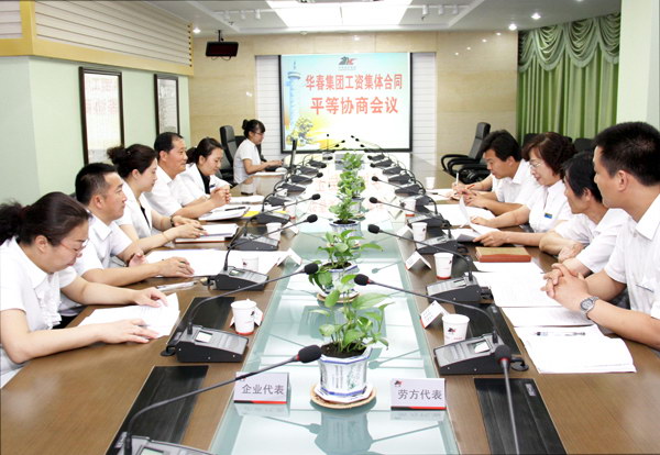 華春投資集團(tuán)企業(yè)方代表與職工方代表在前幾次協(xié)商的基礎(chǔ)上,于6月9日召開了正式的三項(xiàng)集體合同平等協(xié)商會(huì)議。勞資雙方都本著從整體上維護(hù)員工的合法權(quán)益、構(gòu)建和諧的勞資關(guān)系、促進(jìn)企業(yè)生產(chǎn)經(jīng)營(yíng)秩序良好發(fā)展的原則,嚴(yán)格按照集體合同訂立的程序,就三項(xiàng)集體合同有關(guān)條款內(nèi)容又一次進(jìn)行了全面、仔細(xì)、坦誠(chéng)、熱烈、深刻的平等協(xié)商對(duì)話,達(dá)成了共識(shí),達(dá)到有利于雙方的預(yù)期,最終擬定了集體合同草案。此次平等協(xié)商會(huì)議由華春投資集團(tuán)工會(huì)主席高青主持。