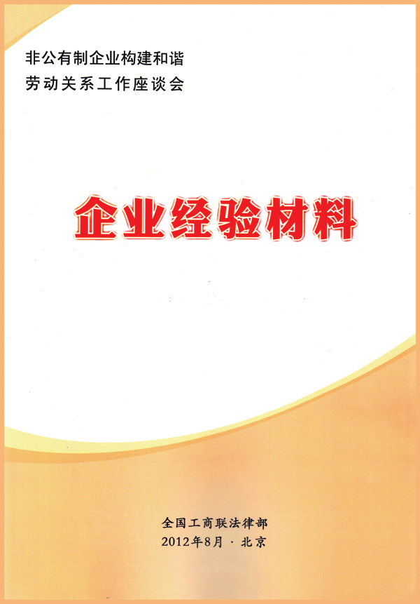 今年8月,華春集團與華春工會的先進事跡收入了由全國工商聯主辦的非公企業構建和諧勞動關系工作座談會企業經驗材料匯編之中。