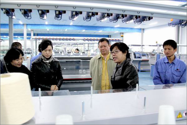 李總裁與管理人員參觀針織廠