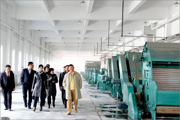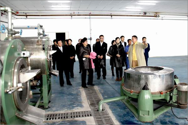 李總裁帶領管理人員參觀毛紡工業園其它車間