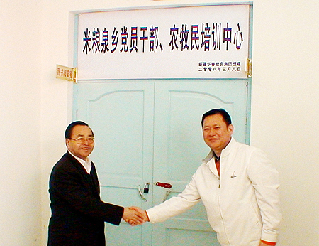 自治區(qū)黨委副秘書(shū)長(zhǎng)農(nóng)辦主任代寧祥和新疆華春投資集團(tuán)董事局主席兼總裁李成功先生,為新疆華春投資集團(tuán)援建的米糧泉鄉(xiāng)黨員干部、農(nóng)牧民培訓(xùn)中心基地揭牌。