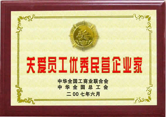 “關(guān)愛員工優(yōu)秀民營企業(yè)家”榮譽(yù)證書
