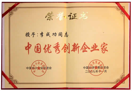 “中國優秀創新企業家”榮譽證書